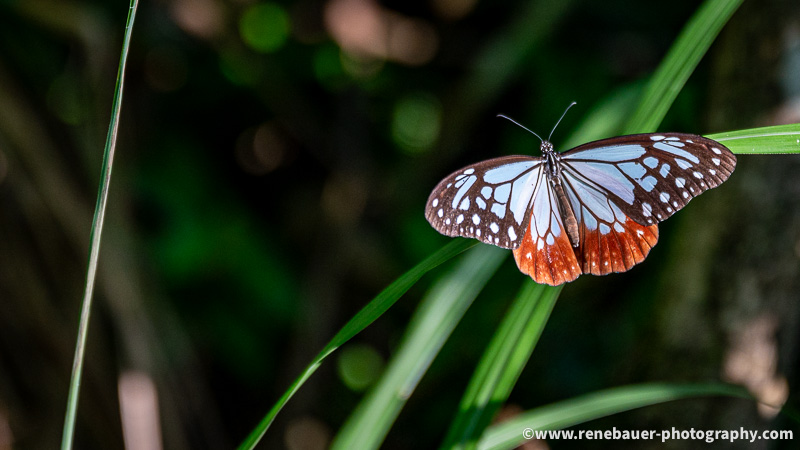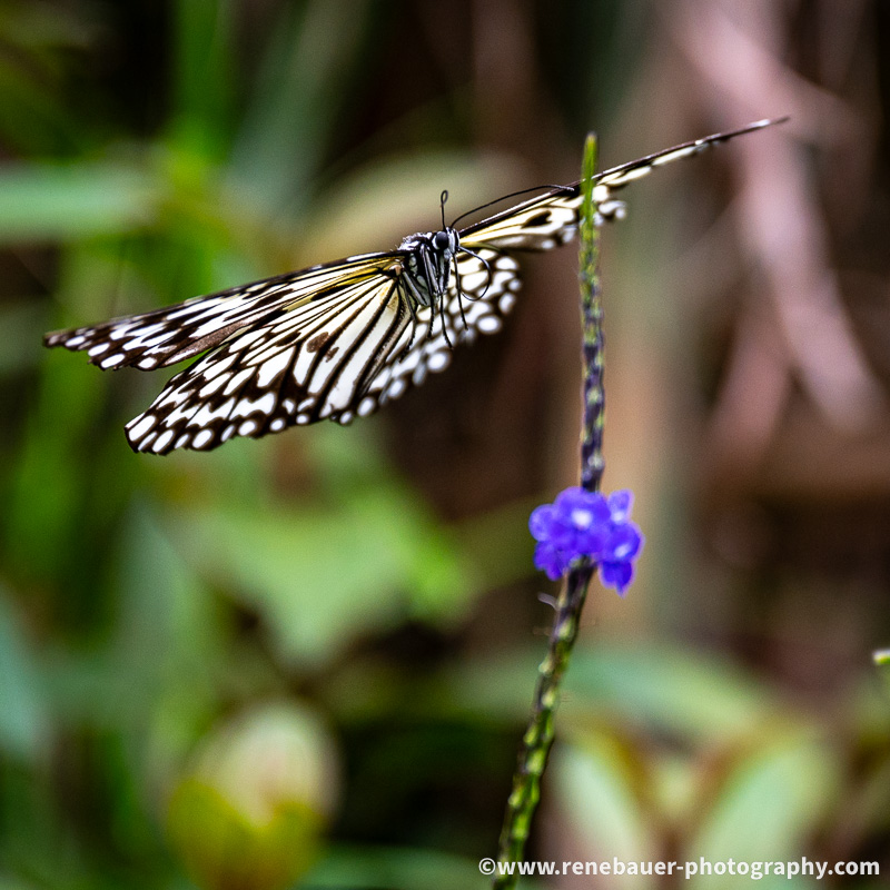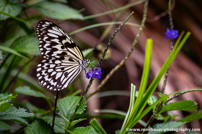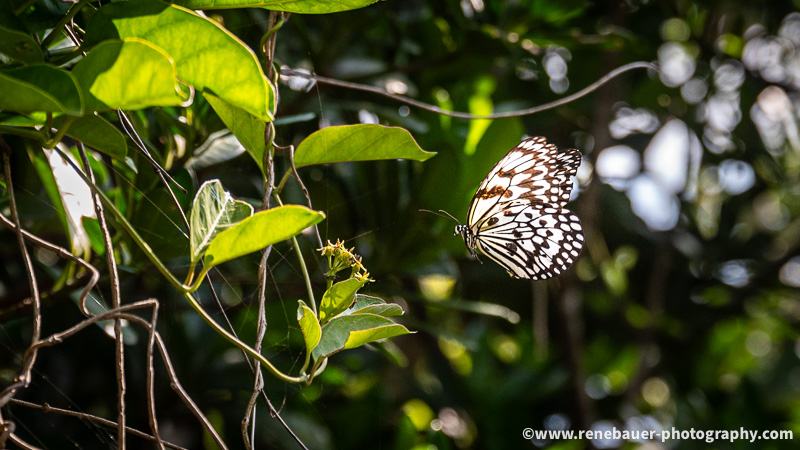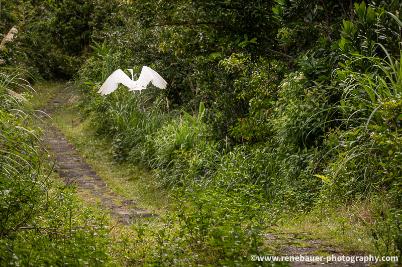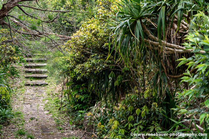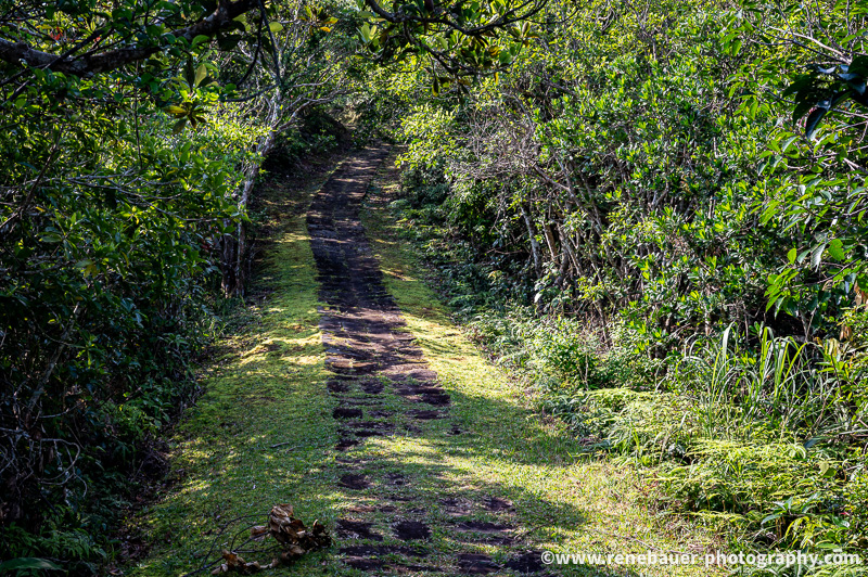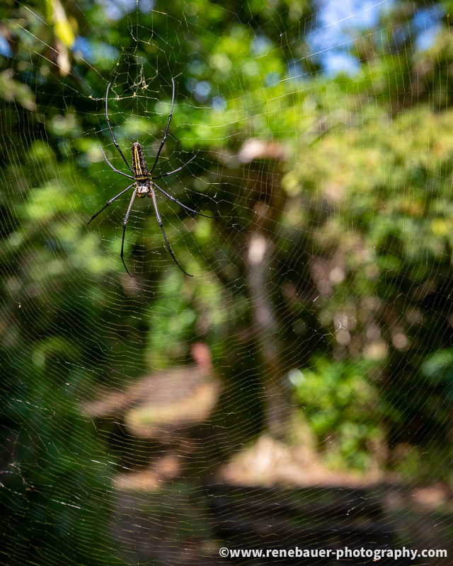 The path is wide, well maintained and not to miss. But on its side is dense forest with rich flora and fauna. Most obvious are the many butterflies fluttering in the air, buzzing insects and the calls of different birds. Also obvious became these big spiders and their sticky webs, especially when you run into it. They use the space on the path and once i missed it, i was busy for quite awhile to get rid of the gluey threads all over my face and head.