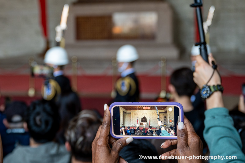 People gathering to hundreds inside the gigantic hall to watch the hourly change of the guards of honor. It’s an impressive performance of the skilled guards. A great subject for photo- and videographers too, if you get a place in the front row though.